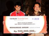 Berhasil meraih mahkota kejuaraan dunia 2015 minggu lalu, Mohammad Ahsan pun membuahkan hasil manis. Pasalnya, hari Jumat (21/8) Malam di halaman GOR Djarum Magelang, Ahsan yang merupakan pemain PB Djarum Kudus mendapat bonus 500 juta oleh Djarum Foundation....