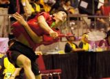 Mohammad Ahsan/Tontowi Ahmad bersiap menghadapi partai final perorangan bulutangkis Pekan Olahraga Nasional (PON) XVIII di Riau, Rabu (19/9). Keduanya akan bertemu pasangan DKI Jakarta, Agripina/Marcus Fernaldi, yang juga menjadi ...