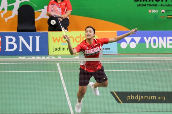 Pebulutangkis tunggal putri U17 asal PB Djarum, Shaafiya Yasmin Maitsaa berhasil tampil cemerlang di babak 32 besar WONDR by BNI Sirkuit Nasional A Jawa Timur 2025. Lulusan Audisi Umum PB Djarum 2018 itu sukses melaju ke babak 16 besar, setelah mampu mengalahkan wakil PB Mutiara, Kayla Arsya Medina dengan skor 21-9, 21-15 di GOR Sudirman, Surbaya, Selasa (22/4).