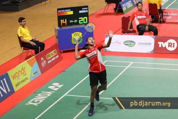 Sementara Mikha memastikan posisinya dengan mengalahkan Metta Handayani Hartono (Jaya Raya Jakarta) dengan skor identic 21-14, 21-14.