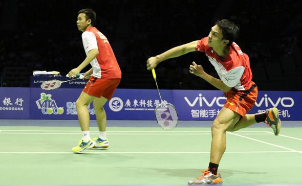Indonesia sebenarnya memulai pertandingan dengan baik. Pasangan Mohammad Ahsan/Hendra Setiawan yang selalu diturunkan sebagai lokomotif tim Piala Sudirman Indonesia bermain apik saat menghadapi mantan ganda putra nomor satu dunia Cai Yun/Fu Haifeng. Memiliki rekor kemenangan yang baik atas ganda China tersebut, Ahsan/Hendra menang straight game dengan 21-16, 21-17. Kemenangan Ahsan/Henra membuat posisi Indonesia unggul 1-0.