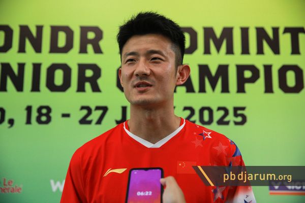 Mantan pemain bulutangkis nomor satu dunia asal China, Chen Long, mencuri perhatian di GOR Manahan, Solo, Jawa Tengah. Ia datang membawa timnya untuk bertanding di Asia Junior Championships 2025.