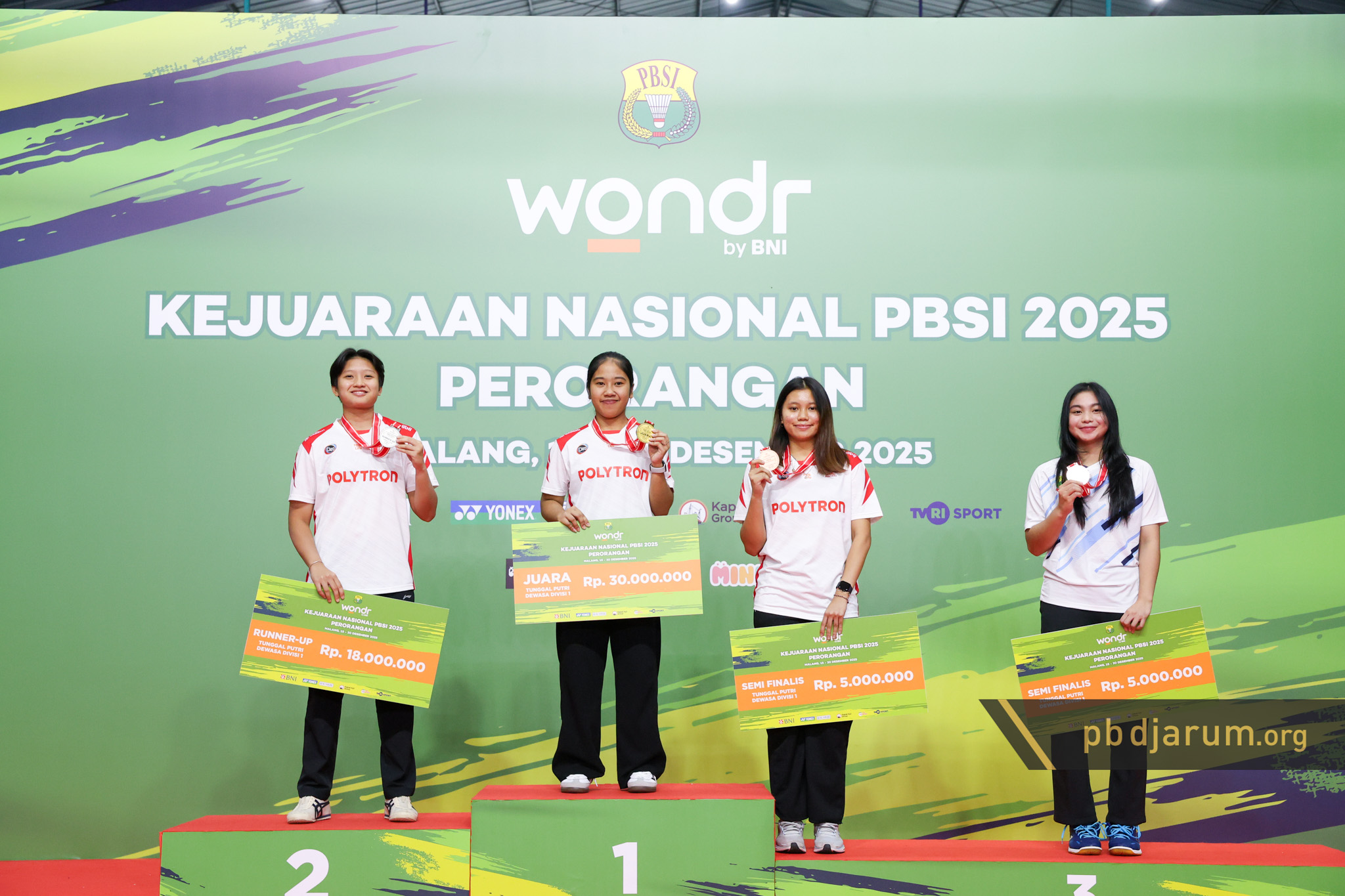Podium juara tunggal dewasa putri Kejurnas PBSI 2025