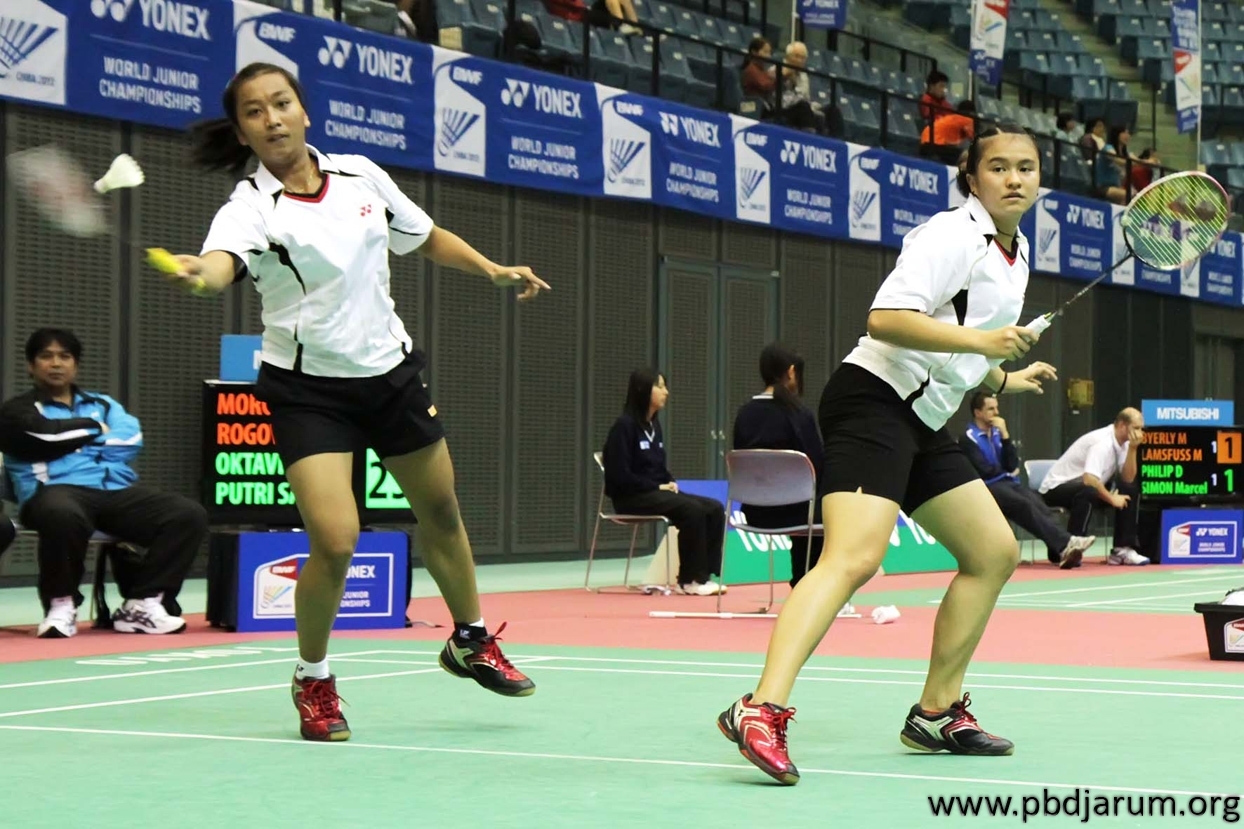 Melati/Rosyita menjangkau shuttlecock