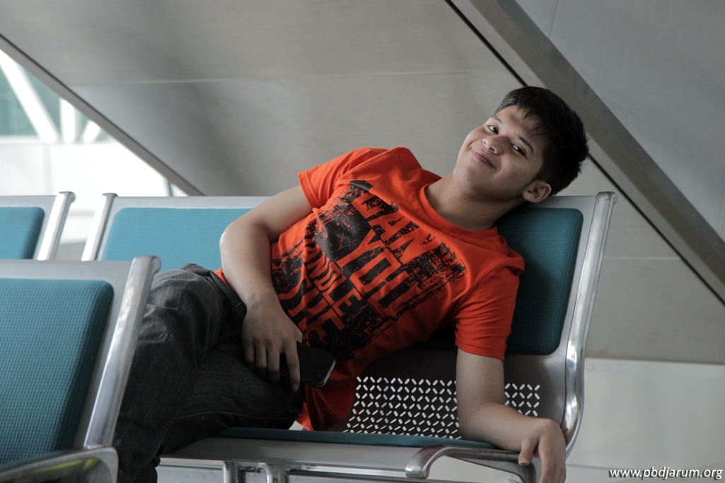 Fikri Ihsandi duduk santai menunggu boarding