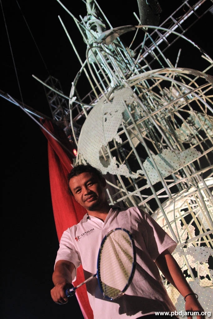 Rudi Mantofani di depan Sculpture Super Smash