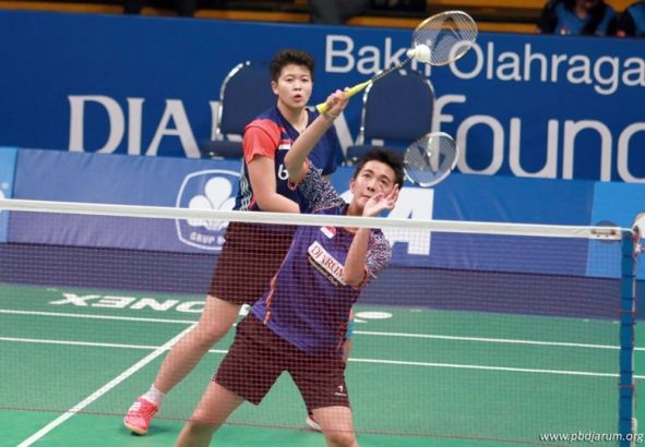 Vita memotong laju shuttlecock di depan net