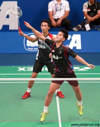 Hardianto memotong laju shuttlecock