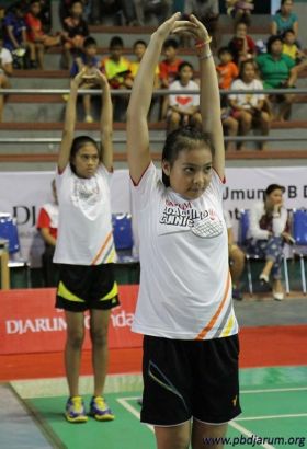 Peserta putri melakukan pemanasan