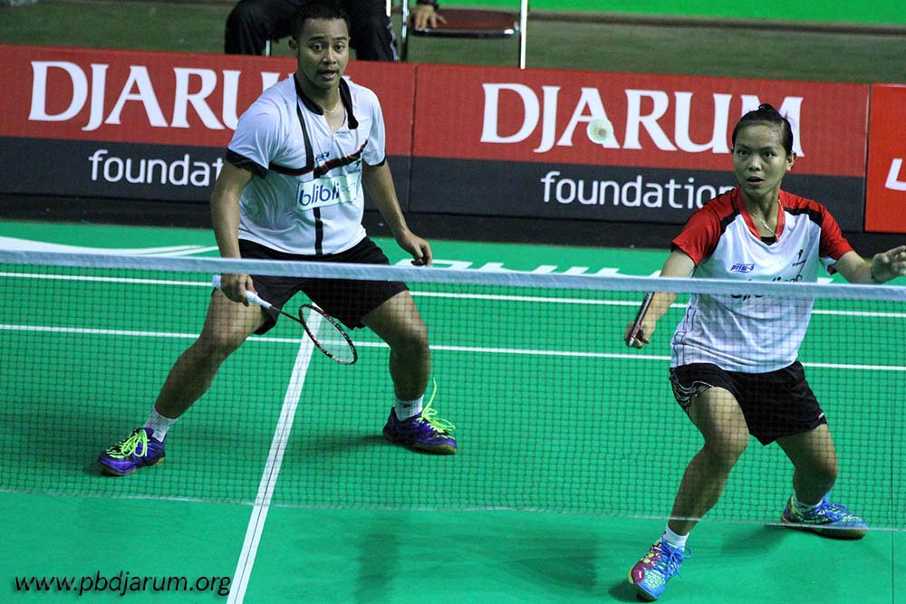 Rehan dan Fadia antisipasi bola datang